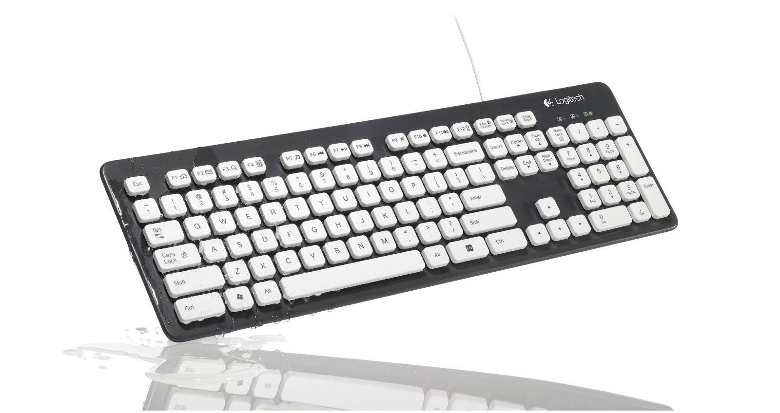 Se puede sumergir en hasta 30 centímetros de agua y seca muy rápidamente gracias a unos orificios de drenaje en la parte posterior. Las teclas están pensadas para aguantar arañazos y los caracteres están impresos con láser y recubrimiento ultravioleta para que no se desgasten con el tiempo. El diseño plano de la superficie y la gran resistencia de los materiales erigen a este teclado como uno de los más robustos que se pueden encontrar. Viene listo para conectarlo y empezar a escribir sin problemas ya que no requiere instalar ningún tipo de software. El Logitech Washable Keyboard K310 tiene tres años de garantía y un precio de 41,50 euros.
